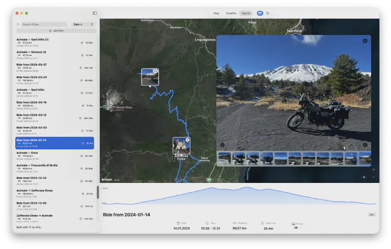 But later, back home, you’re scrolling through thousands of photos in Apple Photos: “Which ride was this from?” That epic viewpoint shot from somewhere in the Alps - was that June or August? That winding road photo - Black Forest or Vosges?